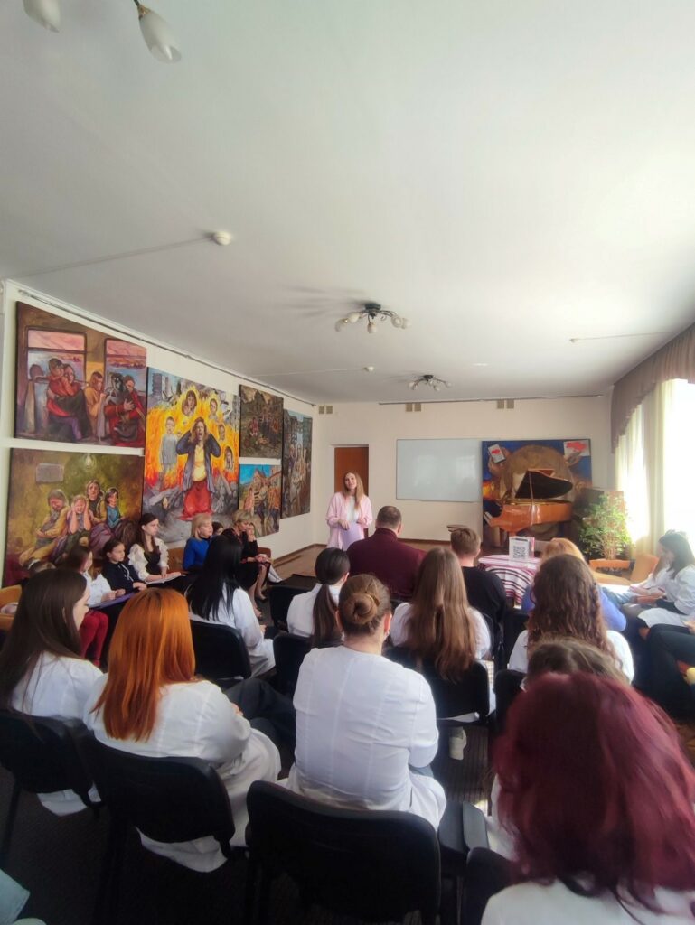 На відкритій лекції було представлено сучасне бачення реабілітації як безперервного, комплексного процесу, спрямованого не лише на відновлення функцій, а й на покращення якості життя та досягнення максимальної самостійності пацієнта. Наголошувалося, що реабілітація є тривалим шляхом, який передбачає поступовий прогрес і ґрунтується на щоденних досягненнях. Особливу увагу приділено ролі мультидисциплінарної команди, ефективність якої визначається узгодженістю дій та постійною комунікацією між фахівцями. Було розкрито ролі кожного із фахівців – фізичного терапевта, ерготерапевта, терапевта мови і мовлення, психолога, лікаря ФРМ, ортезиста-протезиста – а також підкреслено ключову роль сім’ї як активного учасника реабілітаційного процесу. Окремо було висвітлено, що реабілітація виходить за межі медичного кабінету та інтегрується у повсякденне життя пацієнта, де взаємодія, підтримка та системність є визначальними чинниками досягнення результату. Зустріч відзначалася інтерактивним форматом подачі матеріалу, який передбачав активне залучення студентів до обговорення. Це сприяло кращому засвоєнню знань і формуванню професійного інтересу до галузі.