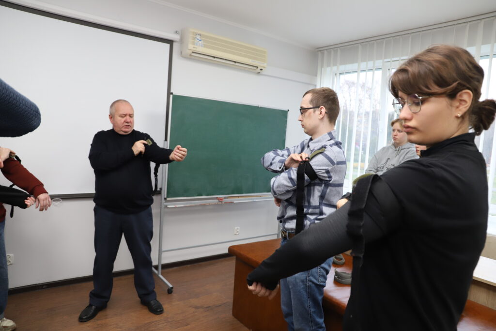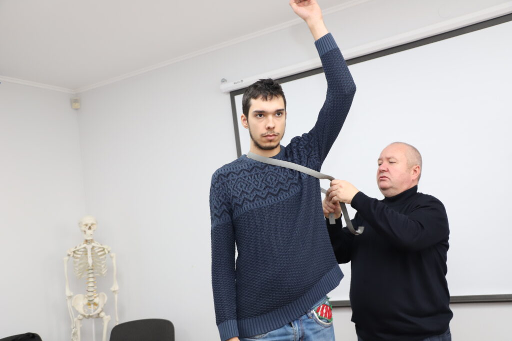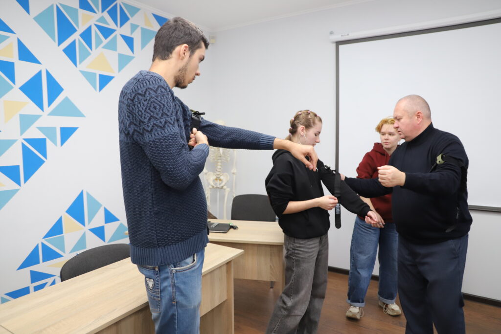 Навчання проводив професор кафедри фізичної терапії та ерготерапії Микола Майструк – фахівець із великим досвідом, який не лише демонстрував правильні техніки, а й пояснював їхні переваги та можливі помилки. Він акцентував: у кризовий момент найважливішим є вміння зберігати спокій і впевненість у своїх діях.